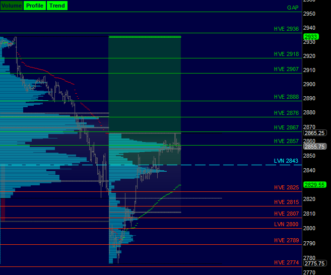 A) If market remains above HVE 2843 with bullish internals, buy towards ONH 2865.25 HVEs 2867 and HVEs 2876-2888-2907-2918-2936.